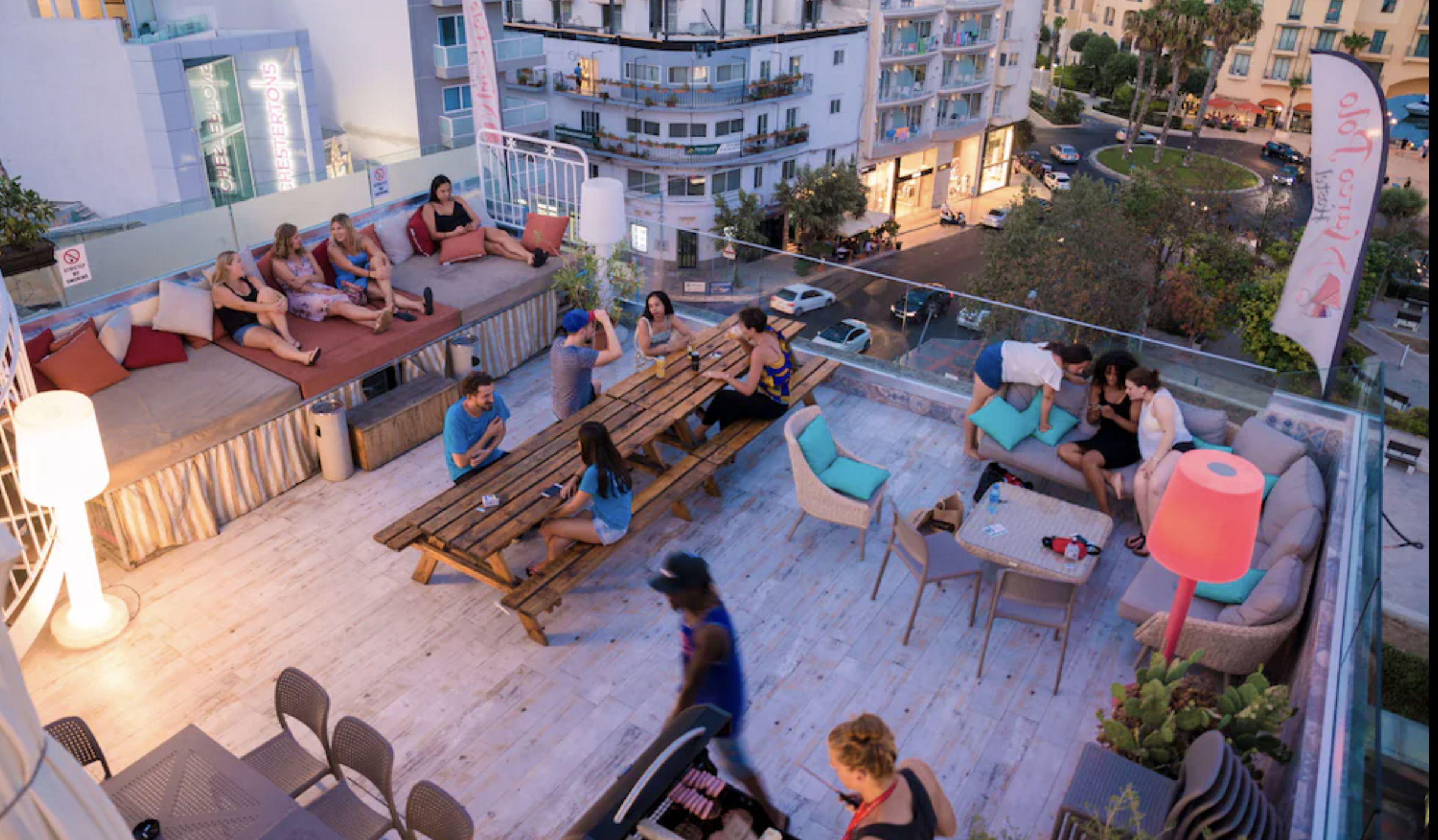 C’est le spot parfait pour se poser, boire un coup, faire des rencontres et se chauffer avant de descendre en club. Et le meilleur ? Paceville est juste en bas, pas besoin de taxi.