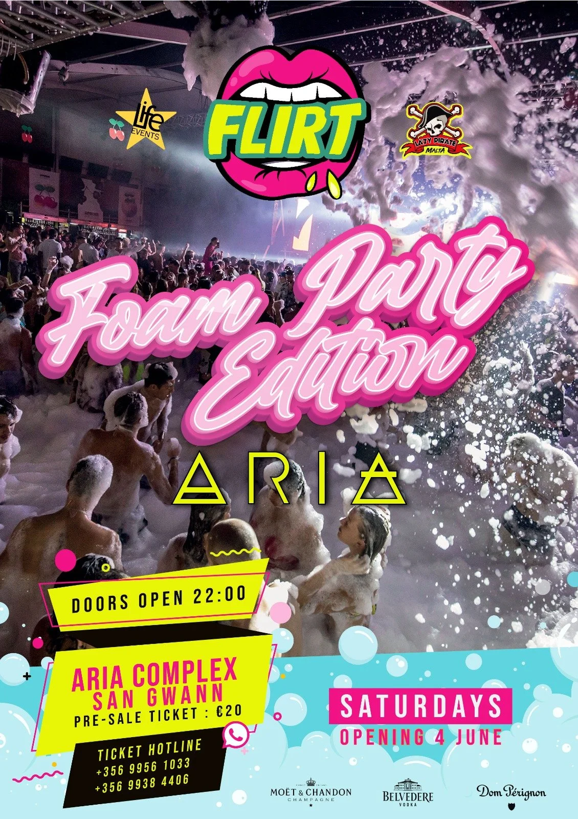 Flirt présente la plus grande soirée mousse des îles maltaises en collaboration avec Life Events et Lazy Pirate Events.